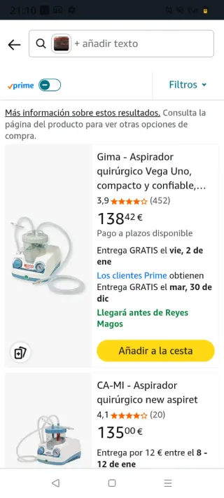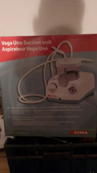 Aspirador quirúrgico Vega Uno de la marca GIMA. Diseñado para uso profesional. - Unidad de succión portátil. - Incluye manguera y recipiente. - Modelo Vega Uno.