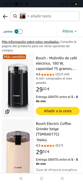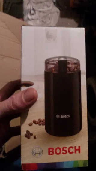 Molinillo de café de la marca Bosch. Ideal para preparar café recién molido. - Diseño compacto y elegante. - Cuerpo de plástico resistente. - Tapa transparente para ver el molido.