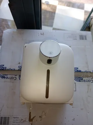 Dispensador de jabón automático de color blanco. Cuenta con un diseño moderno y elegante, ideal para baños o cocinas. - Capacidad visible del líquido. - Sensor de proximidad para dispensación. - Acabado mate.