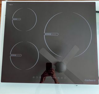 Placa de inducción Corberó con tres zonas de cocción. Usada una semana. - Diseño moderno y elegante. - Superficie de cristal negro. - Controles táctiles.