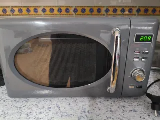 Microondas de diseño retro en color gris. - Acabado brillante. - Puerta con ventana. - Panel de control con botones y dial.