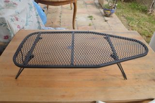 Tabla de planchar portátil con diseño plegable, ideal para espacios reducidos o para llevar de viaje. Su estructura metálica ofrece estabilidad.Con gancho para colgar en el armario - Superficie de malla metálica. - Patas plegables para fácil almacenamiento. - Diseño ligero y compacto.