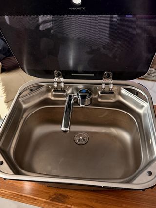Fregadero cuadrado Dometic SNG 4237 con tapa de vidrio, 420 x 370 mm - Material: Acero inoxidable. - Diseño compacto y funcional.