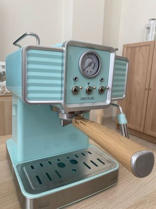 Cafetera de estilo vintage en color azul celeste. Su diseño retro le da un toque especial a tu cocina. - Acabado en azul celeste. - Diseño retro. - Marca Cecotec.