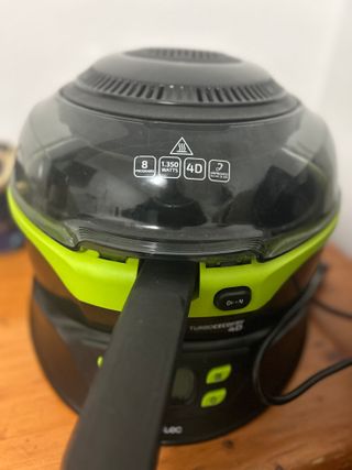 Freidora de aire Cecotec modelo 4D. Color negro y verde, puedes hacer patatas fritas, asados, salteados, pan, tostadas y yogures. - Color negro y verde lima. - 8 programas. - 1350W de potencia. - Capacidad de 4 litros.
