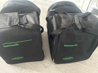 Bolsa de transporte para Thermomix de la marca Vorwerk. Ideal para proteger tu robot de cocina. Se venden 2 bolsas juntas - Color negro. - Logo de Thermomix y Vorwerk. - Asas para facilitar el transporte.