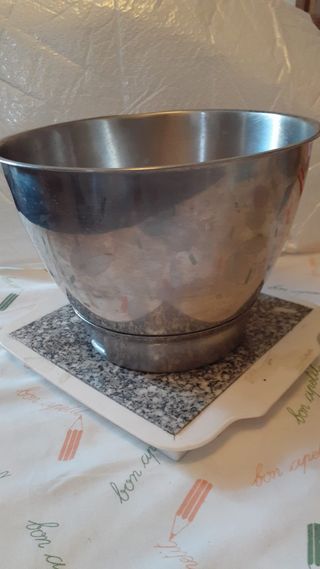 Bol de repuesto para tu amasadora Kenwood Chef de los años 60. Dale una nueva vida a tu electrodoméstico. Kenwood - Bol para robot de cocina Modelo A701 (1960 ́s) Bol de acero inoxidable para robot de cocina Kenwood Chef. - Material: Acero inoxidable. Peso 720 grs
