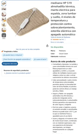 PRECIO NO NEGOCIABLE. NUEVO A ESTRENAR EN CAJA PRECINTADA. Almohadilla térmica eléctrica Medisana HP 519. Suave y confortable. - Tejido agradable al tacto. - Control de temperatura. - Cable de conexión. DESCRIPCIÓN COMPLETA EN FOTOS. SOLO HAGO DESCUENTO COMPRANDO VARIAS COSAS A LA VEZ.