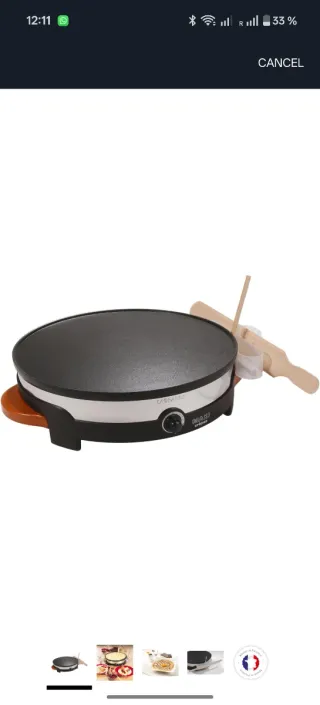 Crepera eléctrica para hacer crepes y tortitas. Incluye accesorios para su uso. - Placa antiadherente. - Asas de madera. - Espátula y distribuidor de masa de madera. - Para Crepes grandes y pequeños - La caja está desgastada pero la crepera solo se ha usado una vez. Como prueba tenéis las espátulas de madera totalmente nuevas, así como la placa y demás complementos. - Tan solo falta el cucharón negro que se ve en una de las fotos junto a los demás complementos. - Solo recogida en Almacera.