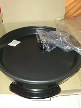 Sin estrenar, tiene doble cara para parrilla y otra para pescado ,con bandeja extraíble , eléctrica para llevar a cualquier lado hotel, camping .....