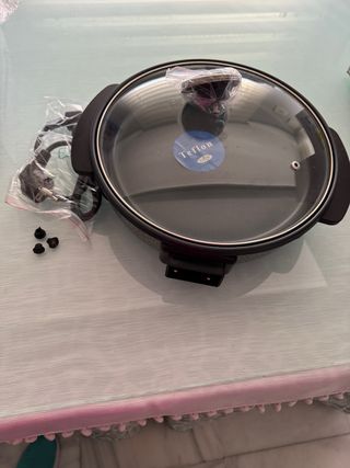 Paellera eléctrica con revestimiento de teflón. - Tapa de cristal. - Incluye cable de alimentación.