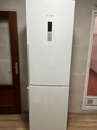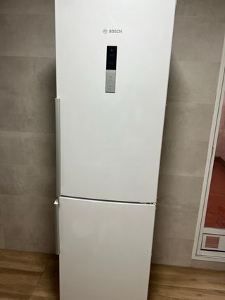 Frigorífico de la marca Bosch en color blanco. Diseño moderno y elegante. - Panel de control digital. - Puerta superior y cajón inferior.