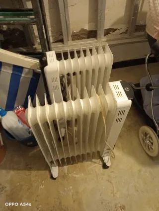 Calentador eléctrico tipo radiador de aceite, ideal para mantener tu espacio cálido. Se vende uno o los dos, ambos están a estrenar. - Diseño de aletas para una distribución uniforme del calor. - Ruedas para facilitar su movilidad. - Cable de alimentación con enchufe.
