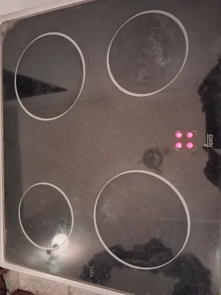 Vitrocerámica de la marca Teka con cuatro zonas de cocción. - Diseño moderno y elegante. - Superficie lisa y fácil de limpiar. - Indicadores digitales de potencia.