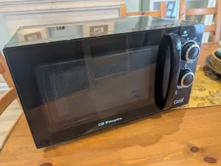 Microondas Orbegozo en color negro, con función grill. Es nuevo. - Diseño moderno y compacto. - Panel de control intuitivo con mandos giratorios. - Puerta con ventana para visualizar el interior.
