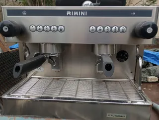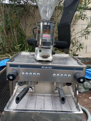 Se vende cafetera profesional Rimini con molinillo. - Cafetera de dos grupos. - Molinillo de café integrado. - Fabricado en acero inoxidable.