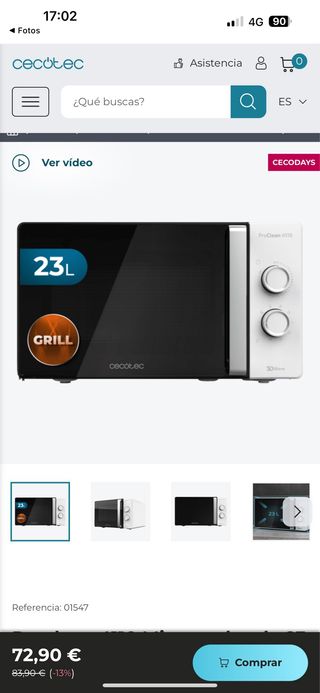 Microondas Cecotec Proclean 4710 23L Grill