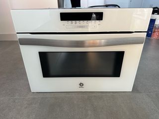 Horno con función de microondas de la Serie Cristal de Balay. Su diseño combina elegancia y funcionalidad. - Acabado en cristal blanco. - Tirador metálico. - Panel de control digital. Se ha usado únicamente dos meses.