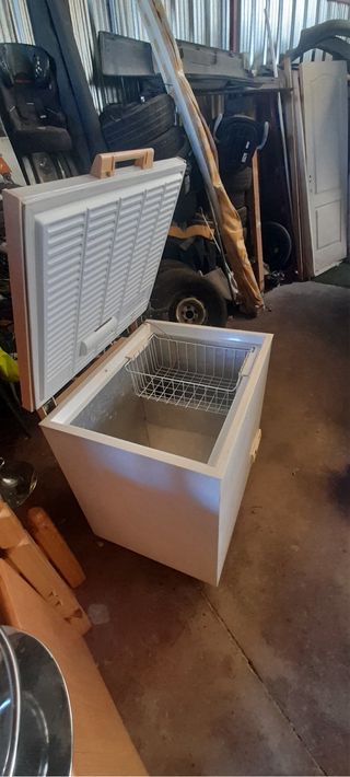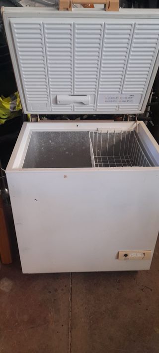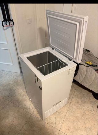 Congelador horizontal de color blanco, con cesta interior. - Cesta metálica. - Control de temperatura.