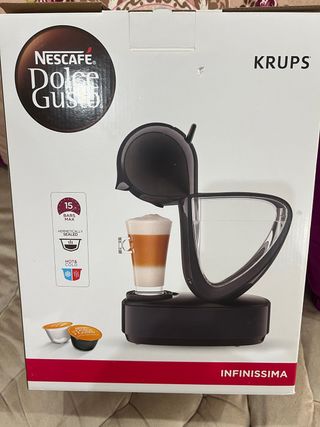 Cafetera Krups Dolce Gusto Infinissima en color negro. Diseñada para preparar bebidas calientes y frías. - Presión de 15 bares. - Cápsulas herméticamente selladas. - Depósito de agua extraíble.