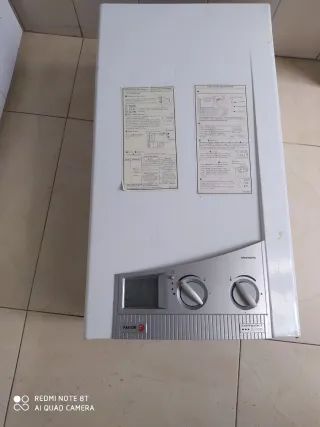 Calentador de agua a gas butano Fagor. - Modelo Compact Plus. - Panel digital con pantalla. - Mandos giratorios para ajuste.