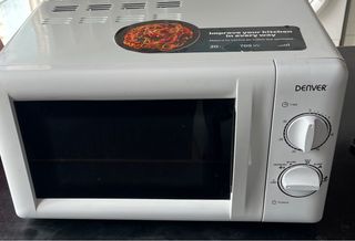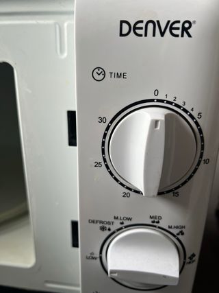 Microondas blanco de la marca Denver con una potencia de 700W. - Capacidad de 20 litros. - Selector de tiempo y potencia. - Función de descongelación.