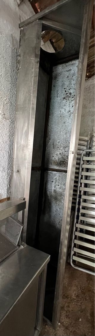 3 metros Campana extractora de acero inoxidable, ideal para cocinas industriales o profesionales. Su diseño es robusto y funcional. - Material: Acero inoxidable. - Acabado: Metálico. - Estilo: Industrial