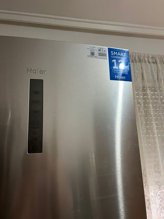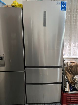 Frigorífico Haier de acero inoxidable con tecnología Smart Compressor. - Diseño moderno y elegante. - Panel de control digital. - Múltiples compartimentos para una mejor organización.