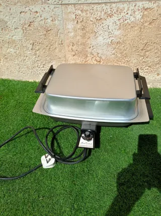 Sartén eléctrica vintage de la marca Lektro Maid. Un clásico para tu cocina. - Diseño metálico. - Asas laterales. - Control de temperatura.
