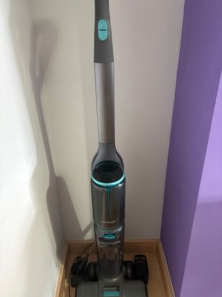 Fregona eléctrica Cecotec FreeGo Wash&Vacuum con función spray. - Diseño moderno en gris y azul. -Friega y aspira a la vez - Depósito de agua integrado. - Mango ergonómico.