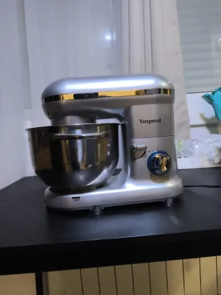 Amasadora de pie de la marca Vospeed con una gran capacidad. - Capacidad del bol: 6.5 Litros. - Color plateado. -