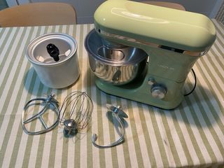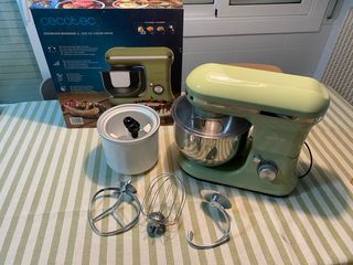 Robot de cocina Cecotec Cecomixer Merengue en color verde. - Capacidad de 5 litros, bol acero inox. - Incluye accesorios para batir y amasar. - Función para hacer helados. - En su caja original.