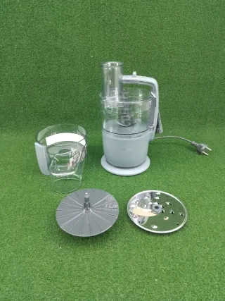 Kenwood, MultiPro Go FDP22.130GY, Procesador de Alimentos, para Picar, Cortar en Rodajas, Rallar, Hacer Puré y Amasar la Masa, con Servicio Exprés, Recipiente, Cuchilla y Disco de 4 mm, 650 W MUY BUEN ESTADO Se reparó un pequeño trozo de plástico con un pegamento profesional especial. Incluye todos los accesorios que se ven en las fotos. Para envíos fuera de España, se debe consultar en privado. Al comprar en persona cerca de la ciudad de Dénia, es posible obtener un descuento. El precio en Amazon es de 160€ MÁS ARTÍCULOS EN MI PERFIL 7151 batidora