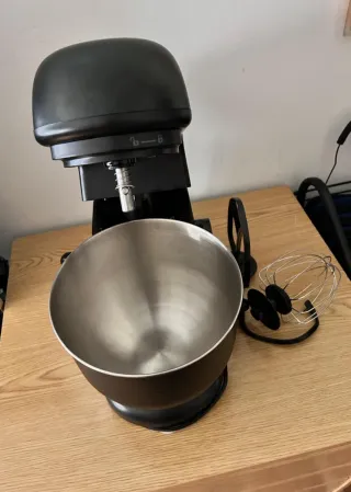 Batidora amasadora de color negro con una potencia de 800W. Incluye bol y accesorios. - Diseño moderno y funcional. - Bol de acero inoxidable. - Accesorios para diferentes preparaciones.