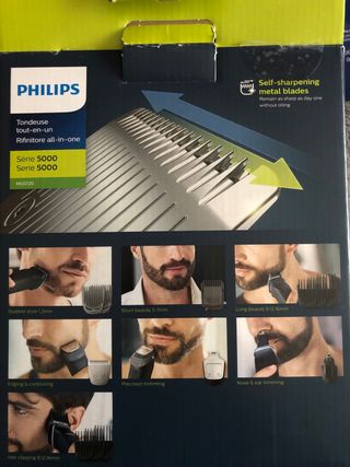 Accesorios NUEVOS para cualquier tipo de maquinilla phillips series 500. (Sin usar: Solo se han sacado de la bolsita para la foto). 1mm 2mm 3,4,5,6,7 mm (en uno) 9mm 12mm 16mm Cortador de pelos de nariz. Definidor de barba. Cepillo. Se regala caja (no incluye la maquinilla).