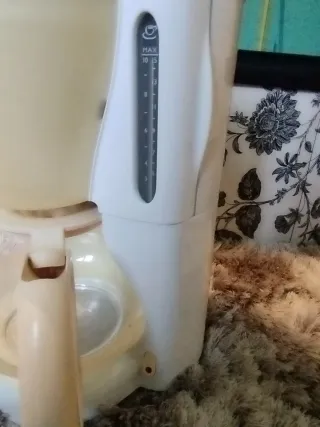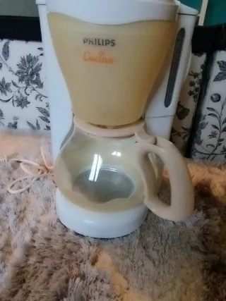 Cafetera de filtro Philips modelo Cucina. - Color blanco y beige. - Jarra de cristal. - Indicador de nivel de agua.