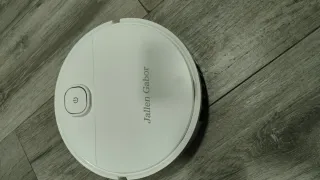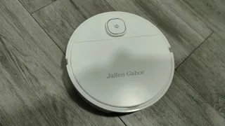 Robot aspirador de diseño circular en color blanco. - Marca: Jallen Gabor - Botón de encendido con indicador luminoso. - Carga por USB (como un móvil)