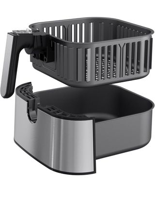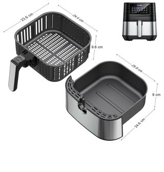 Cesta de repuesto para freidora de aire Innsky. Fabricada en metal y plástico negro. - Diseño con rejilla para una cocción uniforme. - Asa ergonómica para un fácil manejo.