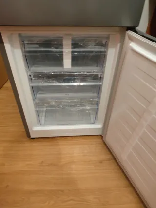 Nevera de la marca Kubo, completamente nueva y sin uso. Presenta un pequeño golpe en la puerta. - Color plateado. - Dispensador de agua integrado.