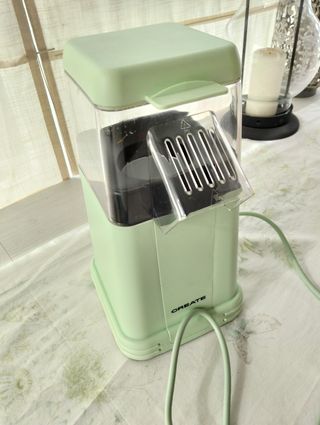 Palomitera de estilo retro en color verde menta. - Diseño compacto y moderno. - Marca CREATE Usado una vez / Tiene su libro de instrucciones, la caja no Máquina automática de palomitas de maíz de estilo retro. En tan solo tres minutos puedes disfrutar del inconfundible sabor de las palomitas de maíz recién hechas, sin necesidad de usar grasas o aceites.
