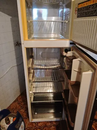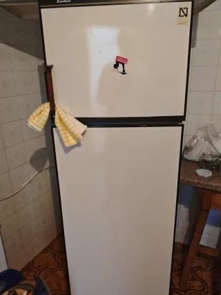Frigorífico de la marca Corberó, aún en funcionamiento. - Color blanco. - Diseño de dos puertas. - Incluye un colgador para paños.
