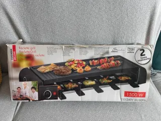 Raclette grill Cuisinier Deluxe con placa de acero inoxidable. - Potencia de 1500W. - Apto para 10 personas. - Placa de grill reversible. - Asas frías al tacto. - Indicador luminoso de encendido. - Fácil de limpiar. - Garantía de 2 años.
