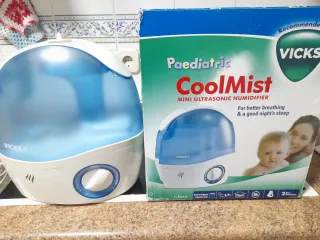 Humidificador Vicks Paediatric CoolMist. - Modelo: Mini Ultrasonic Humidifier. - Diseñado para un mejor respiro y un buen descanso nocturno. - Ideal para habitaciones de hasta 15m². - Funcionamiento de hasta 8 horas.