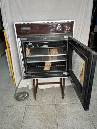 Horno eléctrico con acabado en acero inoxidable y cristal. - Panel de control con tres mandos. - Puerta con tirador metálico. -No hornea bien por la parte de abajo El resto buen funcionamiento
