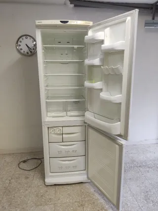 Frigorífico blanco, marca Samsung, modelo SR-L3926B. Antiguo pero funcionado perfectamente y en buen estado general. Medidas: - Ancho: 60 - Alto: 192 - Fondo: 60 Volumen: refrigerador: 246 litros /congelador: 104 litros