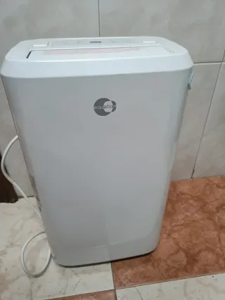 Deshumidificador de aire de la marca Equation. Su diseño es blanco y compacto. Cómo nuevo . - Color blanco. - Logo de la marca Equation visible.