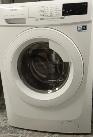 Lavadora de carga frontal de la marca AEG. - Color blanco. - Diseño moderno y funcional.