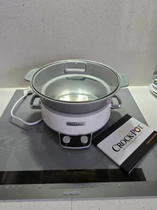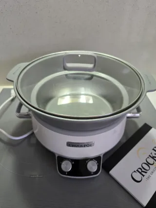 Olla de cocción lenta Crockpot DuraCeramic con capacidad de 6 litros. Ideal para preparar tus comidas favoritas. - Recipiente interior de cerámica. - Tapa de cristal con asa.