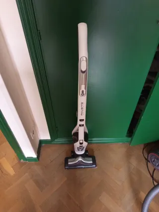 Aspiradora escoba sin cable de la marca Rowenta. Es ligera y fácil de manejar. Le falta el cargador. - Color blanco y gris. - Mango ergonómico.