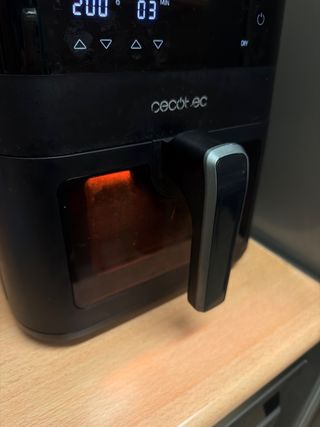 Freidora de aire Cecotec con diseño moderno y ventana para ver el interior. - Panel de control digital. - Asa ergonómica para extraer la cesta. - Base antideslizante.